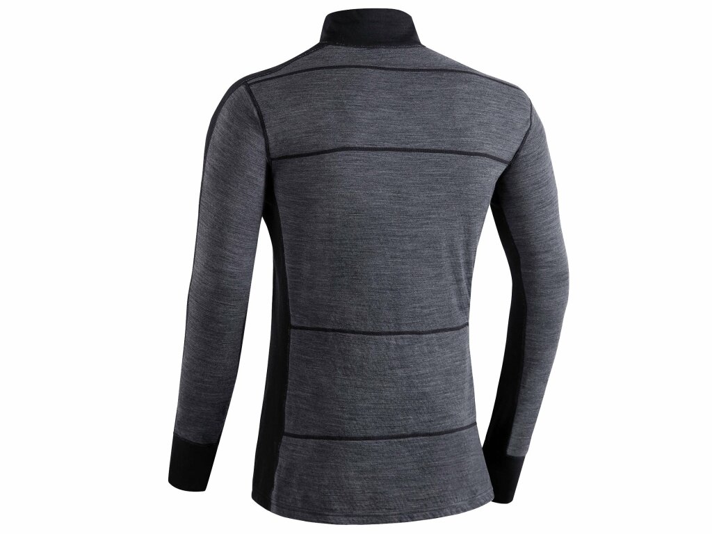 Det grå-svarte stoffet er en nøye utvalgt blanding av 70% merinoull og 30% nylon. Merinoullen gir naturlig varme og transporterer bort fuktighet, mens nylonet gjør stoffet ekstra slitesterkt og mykt. Det slanke designet sikrer en behagelig passform under dine vanlige klær. Stoffet er noe tykkere ved varmeelementene enn på et vanlig understell, for å beskytte kablene mot slitasje når du tar på og av trøyen ofte. Med glidelåsen ved halsen kan kragen åpnes og lukkes etter dine ønsker.