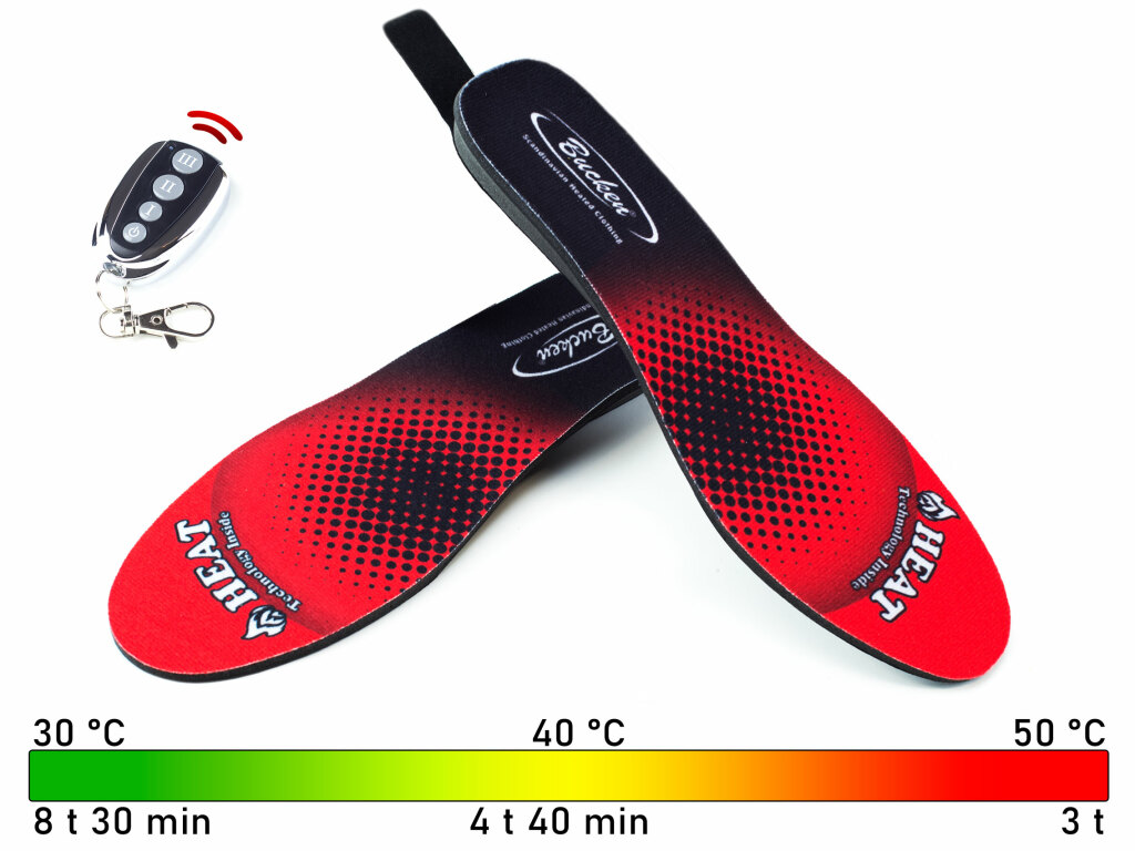 Aktiver de trådløse innleggssålene enkelt med fjernkontrollen, og varmen sprer seg i den fremre delen av foten, under tråputen der varmespiralene sitter. Er tærne varme, pleier resten av foten også å være varm. Avhengig av valgt varmenivå genererer det innebygde varmesystemet varme i 3-8 timer per lading. Sålene er vannavstøtende, slitesterke, diskrete og fungerer helt uten forstyrrende kabler & batteripakker, ettersom alt er integrert i selve sålen.